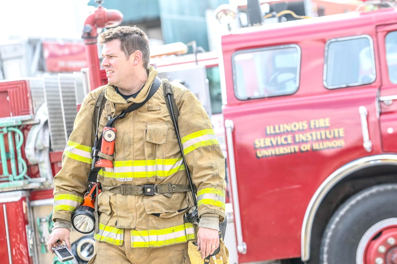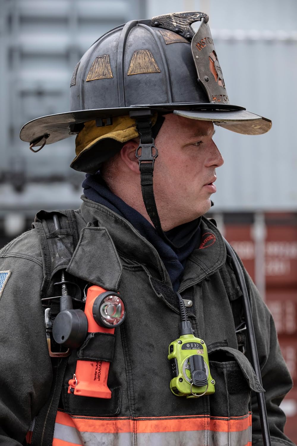 - Clip: Spring-loaded clip for gear and turnout coat mounting
